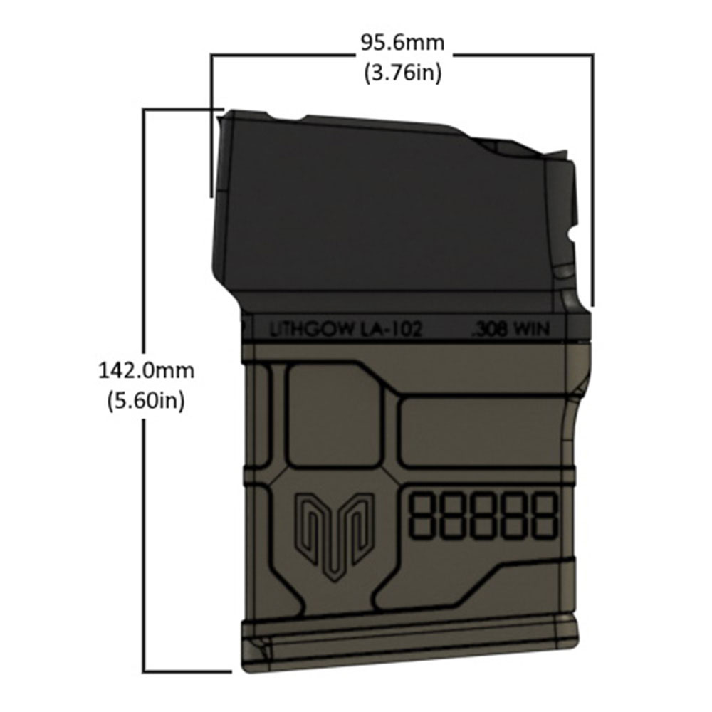 Lithgow LA 102 10 round magazine with 223 Remington, 308 Winchester (incl .243win, 6.5 Creedmoor) - with Mamba bottom metal.