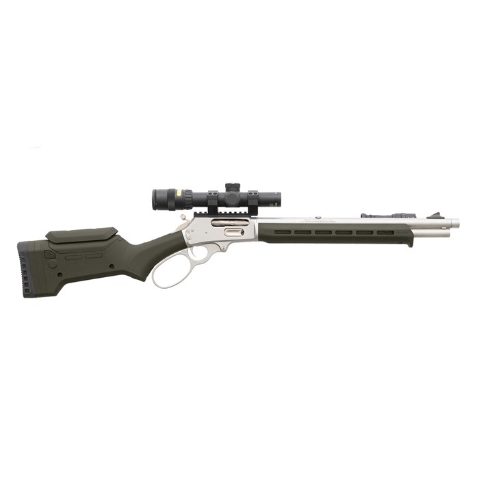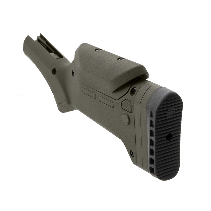 The ELG M-LOK Stock is designed to provide Marlin lever-action rifle shooters a stock with maximum adaptability that optimizes their iconic firearm. With adjustable length-of-pull (LOP) and comb height for various types of optics, storage of extra ammunition or accessories in a weatherized portion of the stock, and the ability to attach various Magpul M-LOK accessories and slings, Magpul brings new capability to the lever- action rifle. The stock allows for a one and a half (1.5”) inches of overall LOP adjustment (from 12.5” to 14.0” in 0.5” increments. The stock ships with a cheek riser and 2 x 0.25” shims for a total comb height adjustment of 0.75”, which attaches to the internal storage compartment door. The stock has an internal storage area, complete with a quiver for six (6) .45-70 Gov’t or 30-30 Win cartridges, and an open storage compartment insert. The stock also accepts Type 1 or Type 2 QD cups for a mounting a sling, and two (2) M-LOK slots reside on each side of the stock for further accessory mounting options such as an ammo saddle. Rounding out the stock’s state-of-the-art feature set is a sling swivel located in the bottom of the pistol grip which allows for shorter slings and a higher muzzle-down carry option. Adjustable LOP (1.5” total adjustability in 0.5” increments) and comb height (0.75” total adjustability in 0.25” increments) On-board ammo storage that is modifiable to other storage needs Includes both a quiver for six (6) .45-70 Gov’t or 30-30 Win cartridges and an open storage compartment insert M-LOK slots for accessories Proprietary recoil pad Sling-swivel on pistol grip allows for easy carry COMPATIBILITY - The stock is compatible with the Marlin 1895, 1894, and 336 receivers. Pre-Ruger® and Remington-built Marlin rifles are compatible with this stock. Cheek Height Adjustment Range - Adjustable by 1/4" increments to 0.75" with cheek riser and spacers LOP Adjustment Range - 12.5" - 14.0", in half-inch increments Length - 12.4 in. Length, max -13.9 in. Height, max - 5.2 in. Weight - 1.25 lbs, at max LOP and no cheek risers Width, max - 1.5 in.
