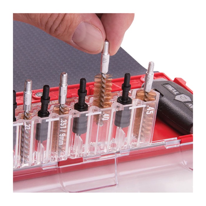 Den kombinerer en Next-Gen rengjøringsmatte med et intelligent designet rengjøringssett fylt med et omfattende utvalg av håndvåpen spesifikke rengjøringsverktøy. Den holder lett å miste våpenkomponenter organisert mens du arbeider.
