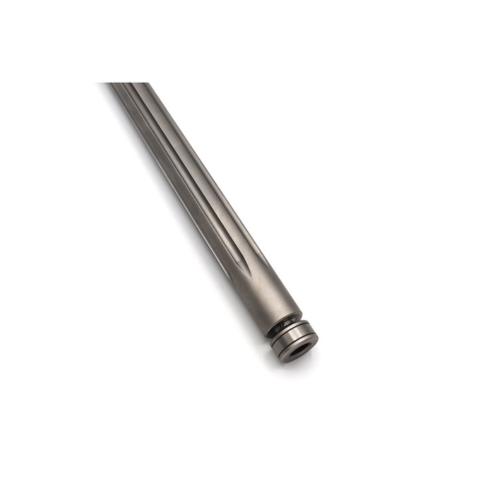 KIDDs ettermarkeds erstatning for .22LR Fluted Stainless Steel Bull Barrel er en av de mest attraktive pipene på markedet og leverer den kvaliteten man forventer fra KIDD. Flutingen er mer en estetisk forbedring enn en kjøleeffekt, men denne raffinerte pipen ser ikke bare bra ut; den er også garantert å gruppere 1/2" på 50 yards.