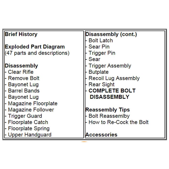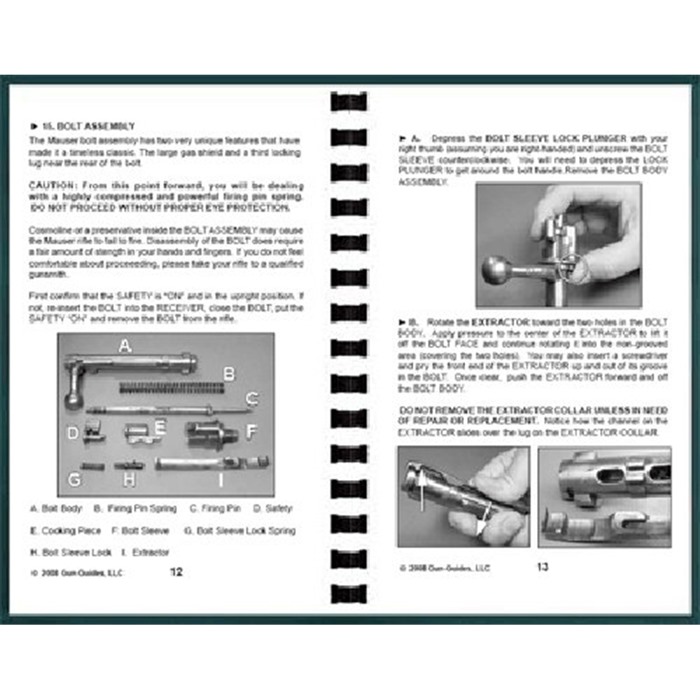 Med MAUSER 98K & M48 ASSEMBLY AND DISASSEMBLY GUIDE kan du holde din historiske investering godt vedlikeholdt. Denne veiledningen er fylt med dusinvis av høyoppløselige bilder og tilbyr eiere en av de mest detaljerte referansehåndbøkene for å holde geværene i god stand, inkludert: