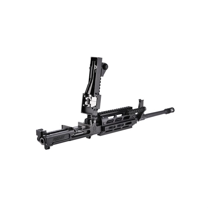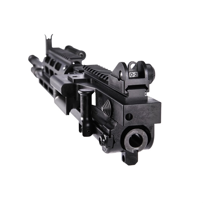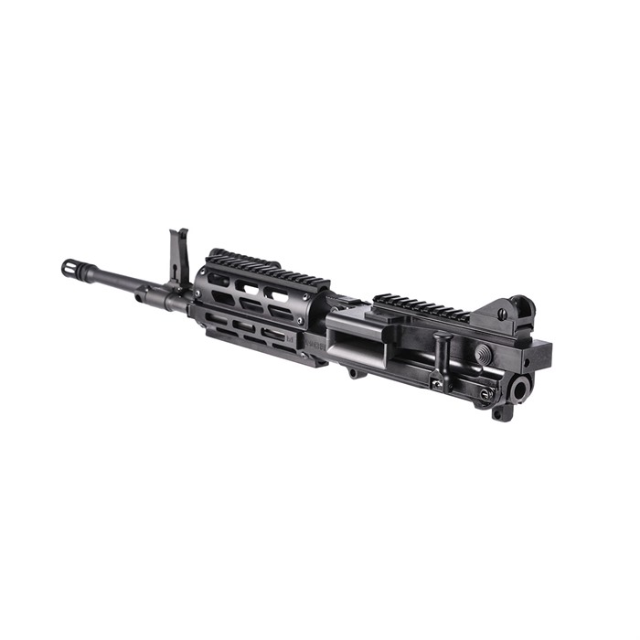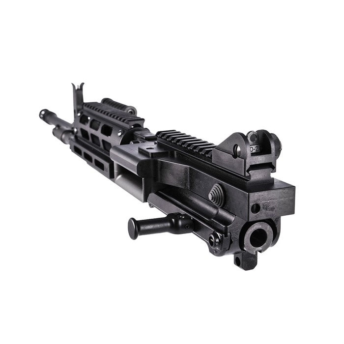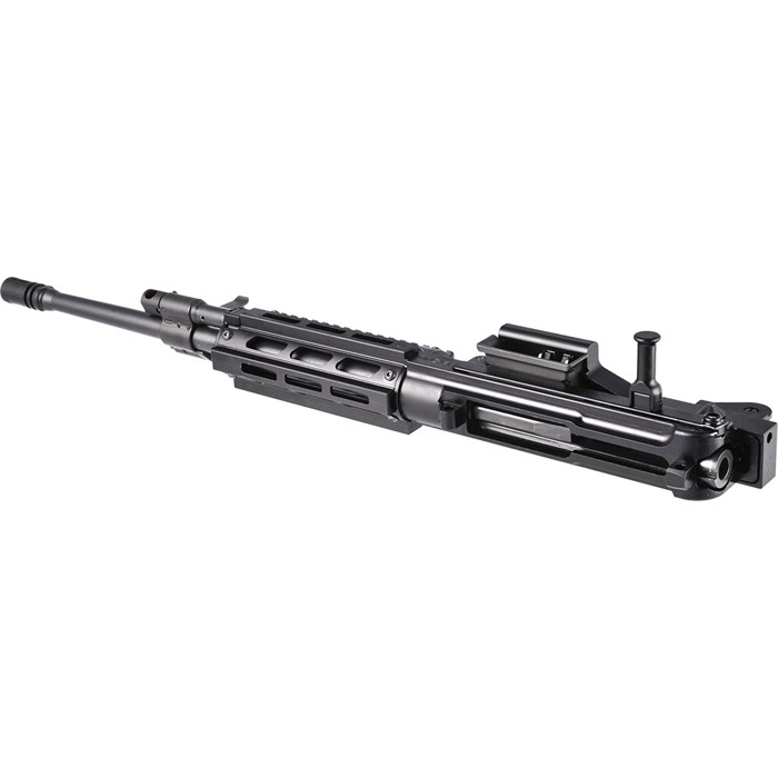 MCR Dual-Feed 223 Wylde Semi-Auto Upper Receiver Assembly Drop-On Upper Receiver Assembly that upgrades your Standard lower receivers or Rifles 16.25” Quick-Change Barrel .223 Wylde, 1:7” RHT, ½”-28 TPI Short-Stroke Gas Piston Operation Dual Feed – Accepts 4179 STANAG Magazines & M27 Linked Ammunition Precision Machined 7075-T6 Billet Upper Receiver, Feed Cover and Charging Handle Precision Machined Billet Steel Feed Tray Finish – Manganese Phosphate & Type III, Class 2 Hardcoat anodize - Black Semi-Auto Bolt Carrier Semi Auto Upper Receiver (no auto-sear pocket) Handguard Style – Classic, MIL-STD 1913 Rail or MIL-STD 1913 Rail at 12 o'clock M-LOK at 3, 6 & 9 Adjustable Sight Set Quick-Change Barrel Handle Ships with Main Action Spring, Bolt Catch, Carbine Stock Spacer, (100) M27 Links & Operator’s Manual Made In USA