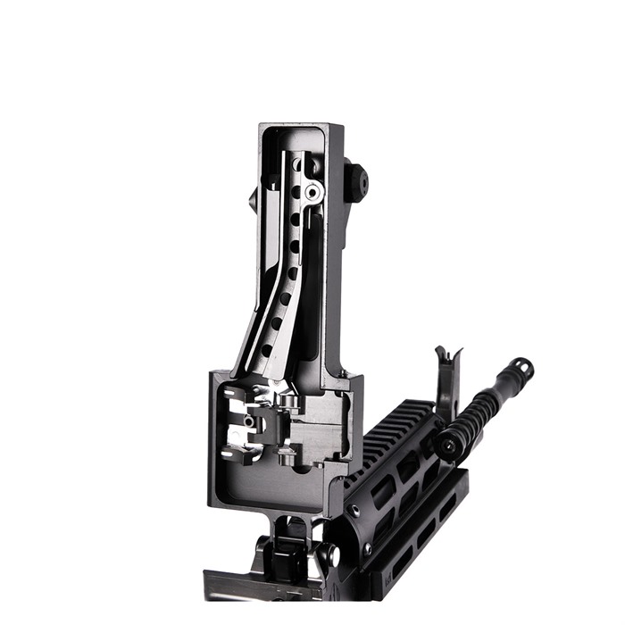 - Byggekvalitet: Precision Machined 7075-T6 Billet Upper Receiver, Feed Cover og Charging Handle