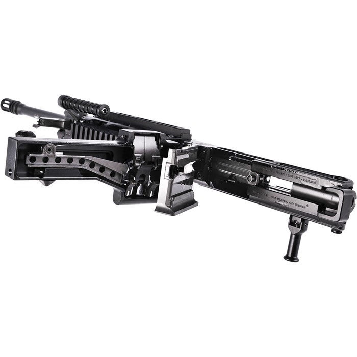 - Matchede magasiner: Dual Feed – Aksepterer 4179 STANAG magasiner & M27 lenkede ammunisjon