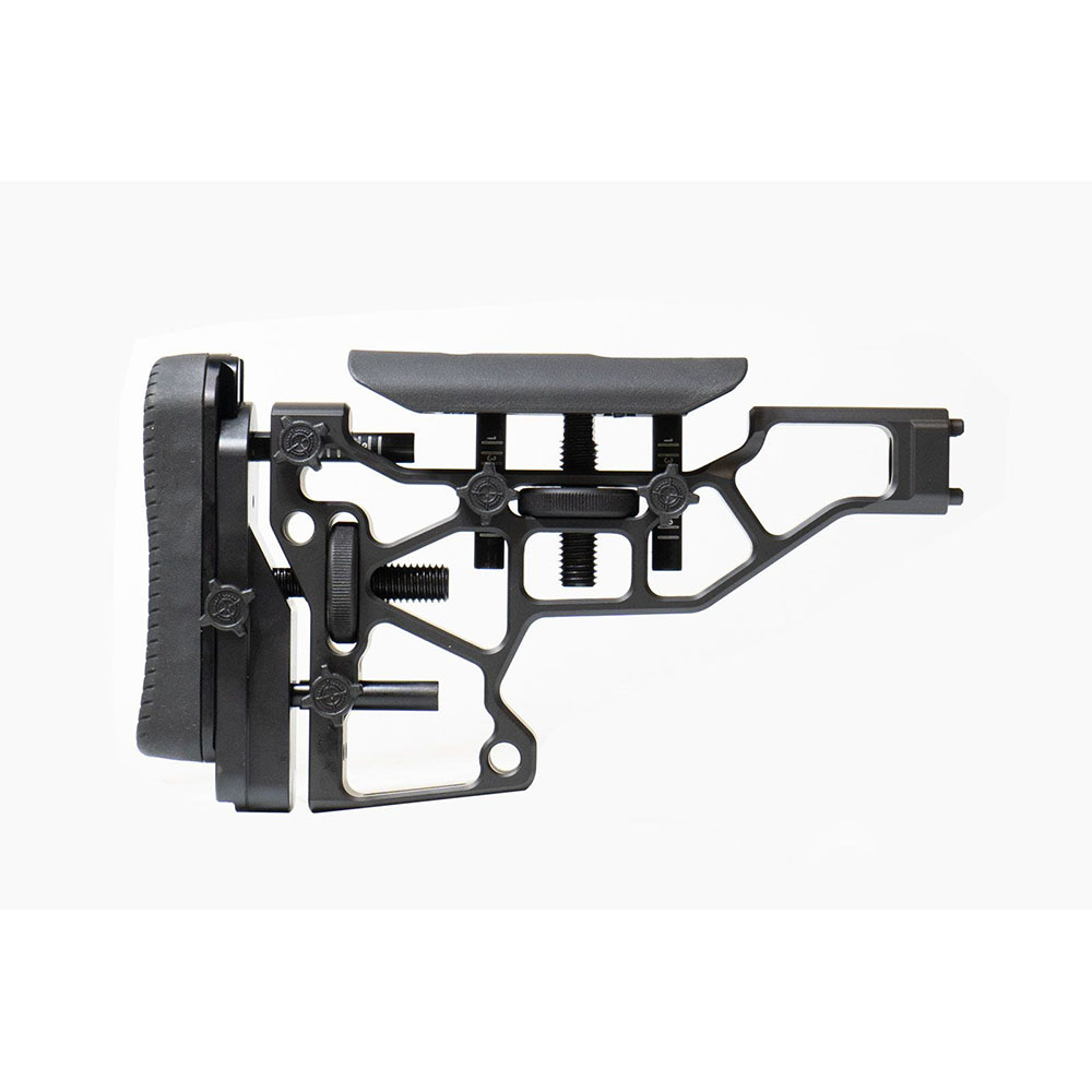 Toolless adjustment of the MDT Skeleton Rifle Stock elevates the comfort and performance of the shooter. Horizontal, vertical and cant adjustment to the cheek riser and buttpad ensures a perfect fit for your shooting position. The Skeleton Rifle Stock is available for fixed interface, as well as MDT’s own ESS and ACC (XTN) buttstock interfaces. This XTN interface includes a folding option.