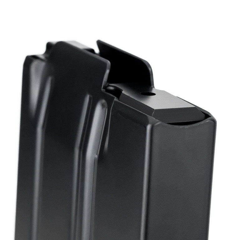 MDT 10-runders magasiner er omtrent ¾” kortere i høyden enn standard AICS 10-runders magasiner takket være MDTs unike Double Stack to Single Feed (DSSF) overgangsdesign, noe som gjør det enklere å bytte magasin når man skyter liggende.