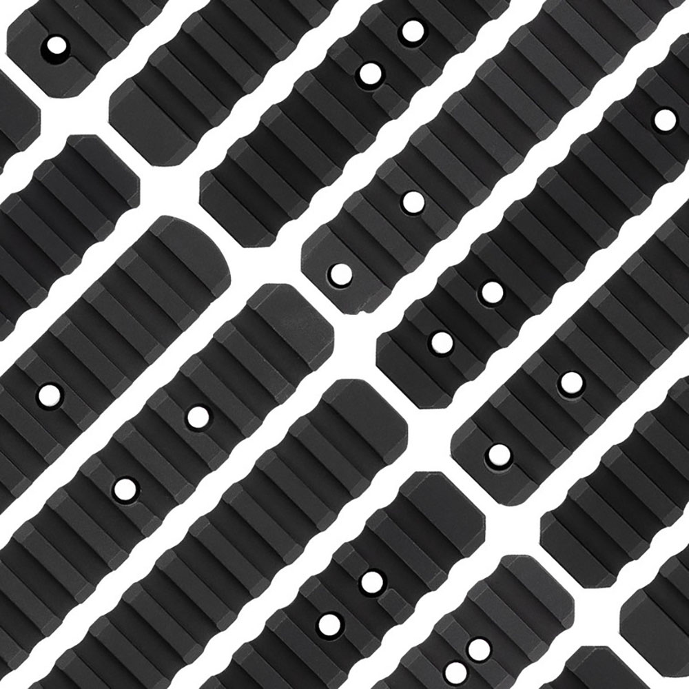 MDT’s Scope Base Picatinny Rails er designet for å gjøre monteringen av optikk enklere. De er maskinert fra 6061-T6 aluminium og deretter hard-anodisert svart for en slitesterk finish. Undersiden av skinnene er profilert for å tillate at skinnene monteres flush på mottakeren og for å matche geometrien til utdømmingsporten.