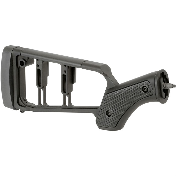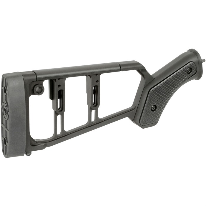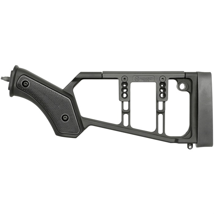 SHOTGUN STOCK FOR BERETTA 1301 FEATURES: Compatible with Beretta 1301 and Beretta 1301 Mod 2 Shotguns Includes integrated buffer to ensure sufficient function Polymer cheek piece provides adjustability for use with iron sights, red dots, or magnified optics Cheek piece in the lowest position maintains the same height as the factory stock Maintains factory length of pull. Spacer plates are an available add-on if a longer length is needed. Ambidextrous design works for left and right-hand shooters Exclusive Midwest Industries butt pad reduces felt recoil while maintaining a secure fit in your shoulder Features several properly placed anti-rotation QD swivel sockets. Also incorporates one standard sling swivel location and stud for versatile sling placement. MI-designed grip panels give a unique look while providing ample texture in a rainy or snowy environment M-LOK® compatible slots on either side for use with MI Universal Shell Holders or M-LOK® panels for aesthetics Provides factory length of pull to fit most users Grip and stock beam made from Hard Coat Anodized 6061 Aluminum Weight of Complete Unit: 1lb 11oz Made in the USA Lifetime warranty *Does not fit A300 Ultima Patrol*