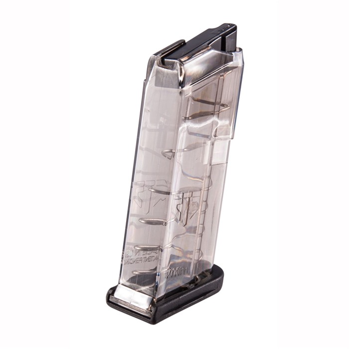 ETS gjennomsiktige polymer Glock 43 magasiner kombinerer lettvekts ytelse med pålitelighet fra OE. De gjennomsiktige magasinene gjør det mulig for deg å se umiddelbart om et magasin er ladd eller ikke.