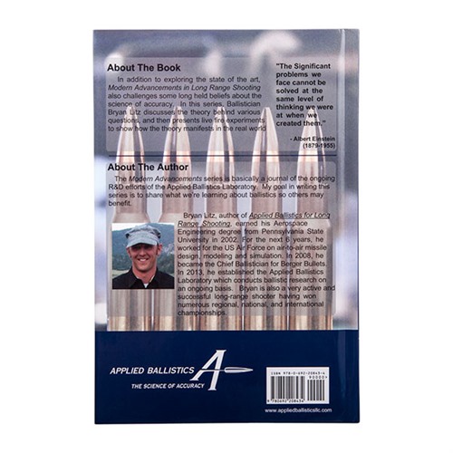 Moderne Fremskritt-serien er en kontinuerlig logg over hva som studeres i Applied Ballistics Lab. Moderne Fremskritt-serien handler om utviklingen av utstyr og vitenskapelig kunnskap, bekreftet med live testing i laboratoriet. I en bransje fylt med reklame, myter og gamle overtroer, gir Moderne Fremskritt-serien skytten rådata som lar dem ta en informert beslutning om noe passer deres spesifikke behov, aldri påvirket av markedsføring. Denne boken dokumenterer den pågående FoU-aktiviteten som finner sted i AB Lab, og består også av myteknusing av visse emner. Den 2. volumet dekker mange nye banebrytende studier. Uten å bli påvirket av markedsføring eller reklamefordommer, er laboratoriet vårt fritt til å publisere upartiske råresultater. I denne boken finner du en studie av Nick Vitalbo som setter presedens for hvordan laseravstandsmålere bør testes. Inkludert er resultatene av nesten 2 dusin LRF-enheter, alle testet etter samme standard. Hvis du er interessert i en detaljert sammenligning av hvordan forskjellige LRF-enheter sammenlignes, er det en individuell resultat-tabell for hver LRF testet som viser ytelsen på forskjellige mål. Du vil også finne en omfattende studie om rimfire-ammunisjon, som går over løpet og vridningseffekter på MV, MV-variasjon, BC og BC-variasjon. Bortsett fra mange avanserte håndlastings emner, vil du også finne en studie om løpeteknologi. Spesielt tradisjonelle vs karboninnviklede løp, og hvordan de presterte.Fjernet fra programmet