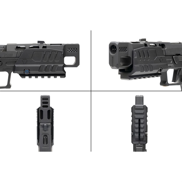 Lag av S45C-stål med Quench Polish Quench (QPQ) prosessfinish. Raskt og enkelt redusere følt rekyl og senke løpet med Kompensatoren for Strike Modular Chassis (SMC).