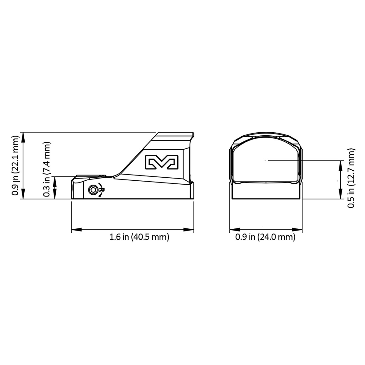 The Mepro MPO-DS is an open reflex red dot sight designed for subcompact or slimline pistols. This cost-effective optic punches far above its cost. It features a 3.5 MOA red dot reticle, RMSc/JPoint footprint, automatic brightness control, CR2032 battery lasting 3 years plus while being water, shock, and fog proof.