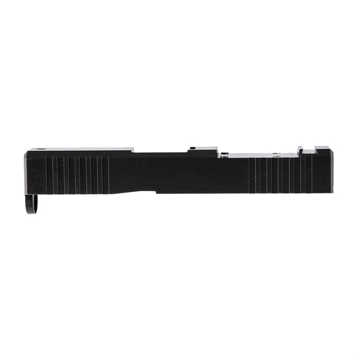 The Brownells RMS Cut Slide for Glock® 43 enables you to install a Shield Sights RMS red dot sight on your pocket Glock®. It offers all the benefits of our "Front Cut" slide for Glock® 43, including forward slide serrations that give you extra leverage in manipulating G43's slide against its stiff recoil spring. The cutout on top of the slide behind the ejection port accepts a Shield Sights RMS or other red dot that fits the RMS mounting footprint. We include two correct-length screws for securely anchoring the RMS to your Glock® 43's new slide. The RMS Cut Slide for Glock® 43 also comes with a factory rear sight dovetail and slot for the front sight tenon. They will accept both factory plastic sights and any aftermarket sights that fit the factory cuts, enabling you to co-witness "iron" sights with the red dot for backup. The G43 slide does not require a firing pin channel liner. Machined from heat-treated & hardened 17-4 stainless steel billet Hard, wear-resistant matte black Nitride finish Internal dimensions identical to factory slide Includes Factory rear sight dovetail & front sight tenon cut Slide only - no internal parts (see Gun Tech Note below) Optic mounting screws not included Our RMS Cut Slide gives you more grasping surface on your Glock® 43 by adding deep-cut serrations up front. This is a big help when making a quick press check of the chamber. Both the front and rear serrations are cut to the same depth as the factory grooves - so there's no compromise of overall slide strength. Crisp 90-degree edges on the grooves give you excellent purchase for chambering a round on the first try. Brownells Gun Tech™ Note: The Shield Sights RMS Cut Slide for Glock® 43 consists of the bare slide only. You will need to retain your pistol's existing barrel (or an aftermarket upgrade) and recoil guide / spring assembly, extractor, extractor depressor & spring assembly, and rear coverplate.