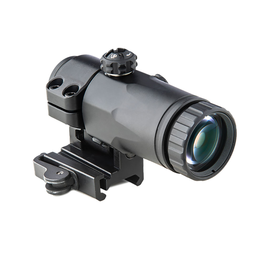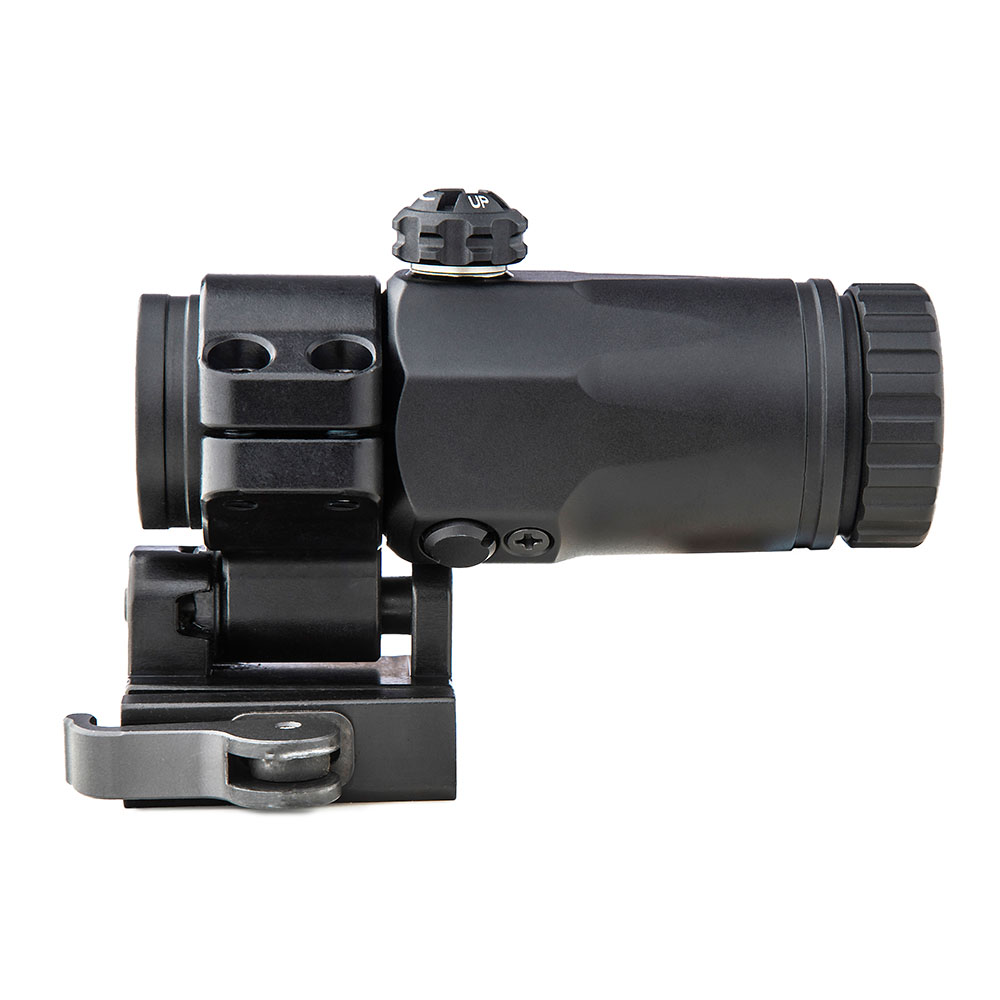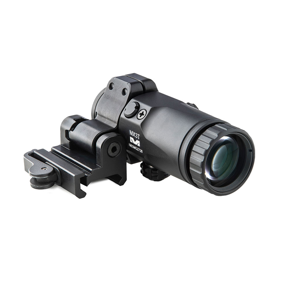 MEPRO MX3 MAGNIFIER er en 3x forstørrer som festes til Picatinny-skinnen umiddelbart bak reflexsiktet. Denne forstørkeren har en integrert mekanisme som lar den flyttes til siden når den ikke er i bruk.