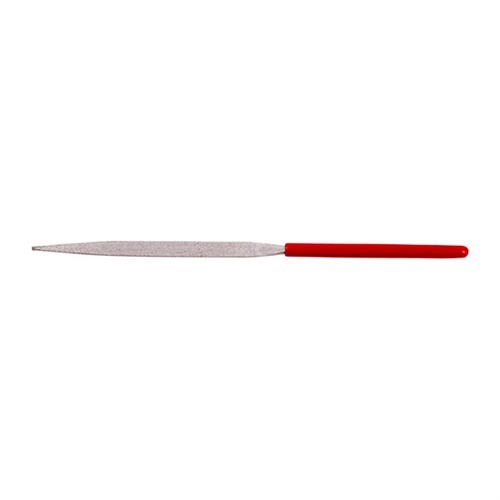 EZE-LAP DIAMOND NEEDLE FILES SETS & SINGLE The EZE-LAP Diamond Needle Files Set are precision tools designed for efficient material removal on hard substances such as carbide, steel, glass, and ceramics. These files feature an industrial diamond powder-impregnated surface, allowing for rapid cutting with minimal effort, making them ideal for gunsmiths and metalworkers requiring fine detailing and shaping. Description and Features: Each file measures 5.5 inches (14 cm) in length and is equipped with a carbon steel shank of 0.118 inches (3 mm) in diameter, ensuring durability and ease of handling. The diamond-impregnated surface provides a consistent and aggressive cut, reducing the amount of travel needed to achieve the desired material removal. Available in both coarse and fine grits, these files cater to a range of finishing requirements, from rapid stock removal to delicate finishing touches. Specifications: Length: 5.5 inches (14 cm) Shank Diameter: 0.118 inches (3 mm) Grit Options: Coarse and Fine Customer Insights: Customers of the EZE-LAP Diamond Needle Files appreciate their efficiency in cutting through hard materials with minimal effort. The availability of coarse and fine grits allows for versatility in various applications, from aggressive material removal to fine finishing. The durable construction and consistent performance make these files a valuable addition to any professional's toolkit. Incorporating the EZE-LAP Diamond Needle Files into your collection ensures you have the precision and efficiency needed for detailed work on hard materials, enhancing both the quality and speed of your projects.
