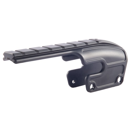 Easy-to- install mount lets you attach an optic or laser sight to your shotgun without drilling, tapping, or making permanent alterations to the gun. Remove the two trigger group pins (Rem.), or the ejector screw and trigger pin (Moss.), slide on the mount, line up the holes, and secure it with the included replacement pins. Low-profile, form-fitting design looks like part of the receiver and positions the sight close to the bore axis. Seven cross-slots in the 5" rail let you install an optic, Weaver top-mount rings, or other accessory, with plenty of flexibility in setting eye relief. Lightweight, yet rugged, reinforced molded polymer stands up to extreme weather conditions ranging from -40°F to 150°F.
