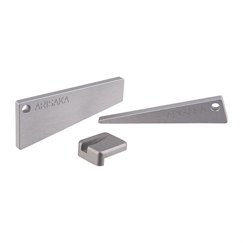 Arisaka Optic Leveler er et rimelig og brukervennlig verktøy for nivåjustering av kikkertsikter montert i ringer eller som en helhet. Baseplaten plasseres på Picatinny-skinnen eller den helhetlige monteringen rett under turrettklusteret på kikkertsiktet, og deretter settes den matchende kilen inn fra siden. Når de 11-graders skrå overflatene på kilen og basen engasjeres, heves toppen av kilen oppover og berører turrettklusteret, noe som automatisk nivåjusterer det.