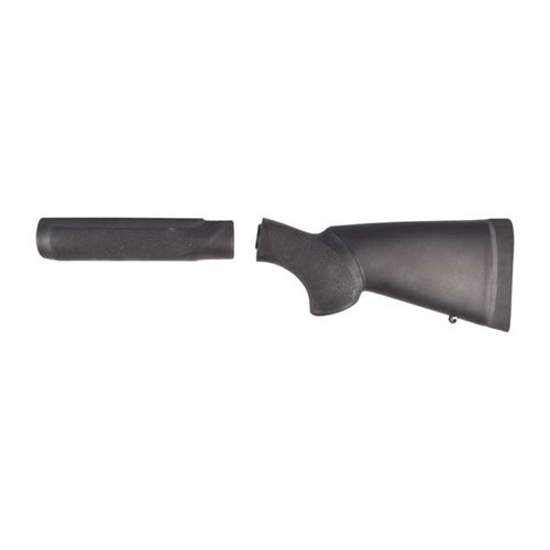 Fiberglass-reinforced, polymer, shotgun stock provides synthetic-stock durability and is overmolded with rubber for a sure grip every time you grab your gun. Rubber is pebble-textured in the gripping areas. Includes recoil-cushioning, butt pad and an integral, sling-swivel stud. Available in standard, factory length of pull or in ShortShot, 12" length of pull for use with body armor or for smaller shooters. Available in sets or individually. Sets and individual components fit 12 gauge only.