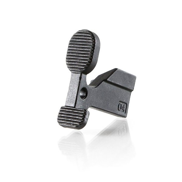 Den store, skrå bolt catch-paden gir raskere aktivering av bolt catch for å tømme riflen. Den inneholder også en bredere tann for mer effektiv engasjement av magasinfølgeren.