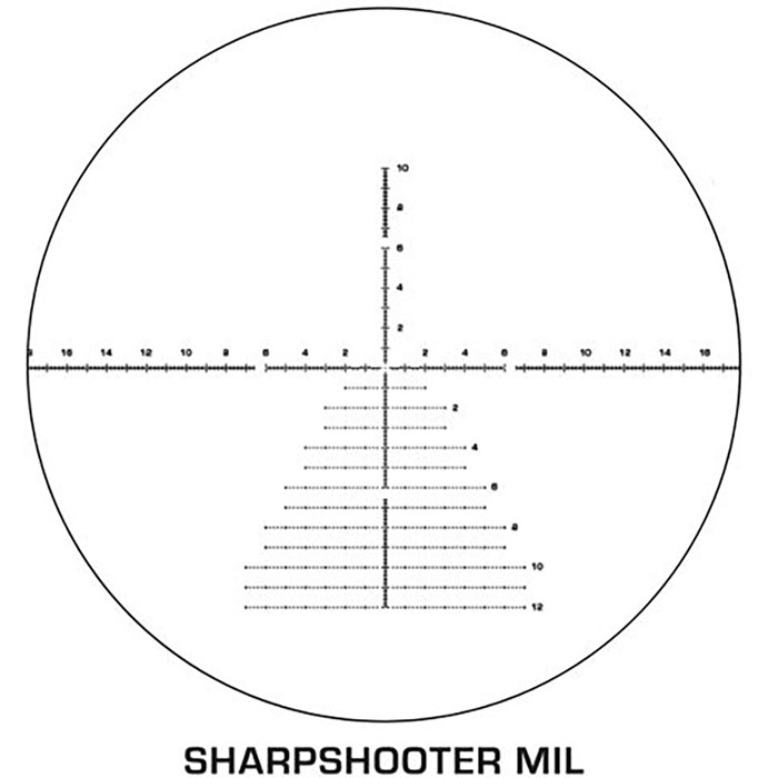 - Sharpshooter FFP etset retikler designet for nøyaktig avstandsbedømming og holdovers på lang avstand.