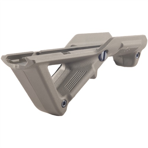 Magpul AFG1 Angled Fore Grip er en lavprofil forovergrep/håndstopp som utnytter naturlig kroppsmekanikk for å gi skytteren mer presis kontroll, raskere pekeevne, og mindre operatørtretthet. AFG™ (Angled Fore-Grip) plasserer støttehånden nær sentrum av løpet for maksimal rekylkontroll, noe som hjelper med raske og nøyaktige oppfølgingsskudd.