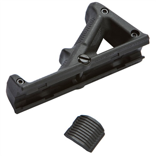Low-profile forward grip/hand stop takes advantage of natural body mechanics to give the shooter more precise control, faster pointing, and less operator fatigue. The Magpul AFG™ (Angled Fore Grip) positions the support hand close to the centerline of the bore for maximum recoil control to aid in fast, accurate follow-up shots. Provides a consistent reference point for finding the correct hand position quickly when mounting the weapon under stress. The natural, ergonomic hand position with the palm facing up results in better blood flow than the “clenched fist” stance often used with vertical grips that leads to fatigue and loss of sensation during long periods in the ready position. Improves on the “thumb break” hold often used with standard vertical grips by allowing the thumb to rest comfortably alongside the top rail, pointing forward, with the rest of the hand in full contact with the forend. Heavy-duty reinforced molded polymer construction stands up to the hard knocks of tactical operations, and deep, molded-in grooves help you maintain a firm grip even with wet hands. Interchangeable inserts give the choice of a straight, uninterrupted gripping surface or one with a convenient ledge to support the index finger. Slides over any Picatinny-style rail and locks securely in place with a hardened steel crossbolt. The more compact AFG2™ is shorter and narrower to take up even less rail space, with enough clearance to fit a larger variety of weapons. Both models may be installed on tactical shotguns and other rifles with railed forends; won’t interfere with insertion and removal of magazines on AK-47s.