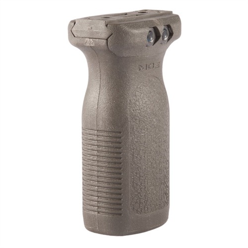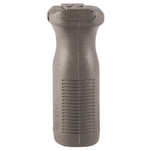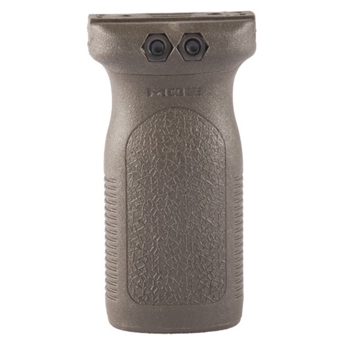 Lightweight vertical grips position your support hand close to the barrel to help you maintain maximum weapon control at all times. Ergonomically shaped design is optimized for use with the “thumb break” method of grasping the weapon, yet works just as well with a traditional vertical grip stance. Aggressive horizontal serrations on the front and back, plus crackle texturing on the sides ensure a secure grasp in all weather conditions. RVG™ (Rail Vertical Grip) combines the MVG’s ergonomic features with a conventional Picatinny attachment system for use on standard railed handguards. Includes an adapter that enables installation on many non-railed forends, too.