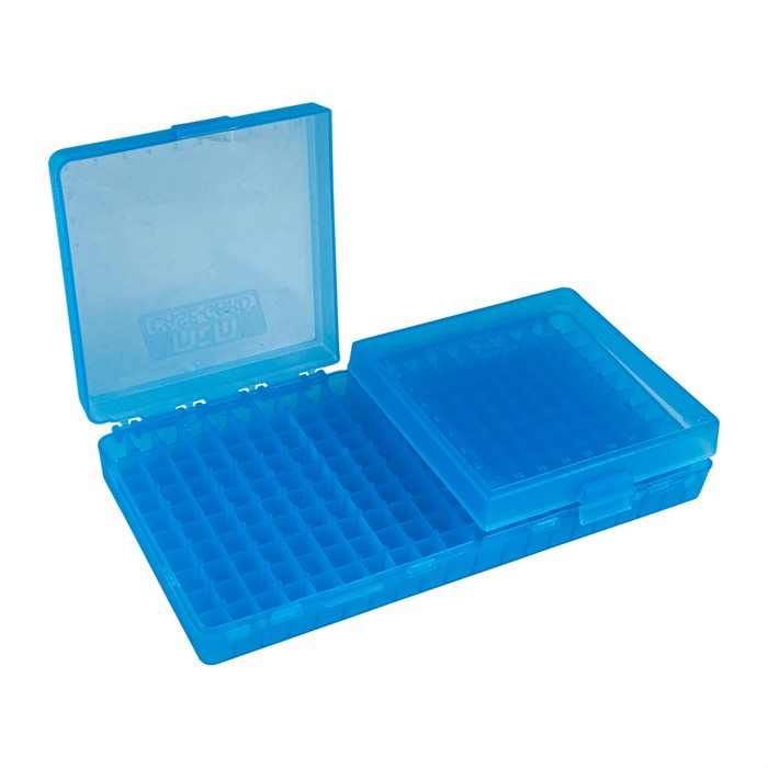 The Case-Gard P-100’s are the perfect ammo carrier for the handgunner who wants to spend several hours at the range. Ideal for storing reloads. They have an easy to grip, scuff-resistant textured surface and are stackable. The Snap-Lok latch and mechanical hinge are guaranteed for 25 years. Load label included. All MTM Case-Gard's are MADE IN USA.