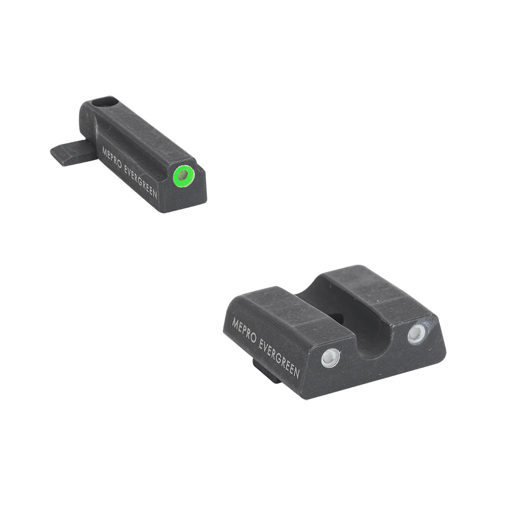 Meprolight tilbyr også utvalgte pistolmodeller med Mepro Evergreen™ superlyse LED-forsikt kun med U-formet baksikt (ikke belyst), som har vist en dramatisk økning i brukernes treffsikkerhet.