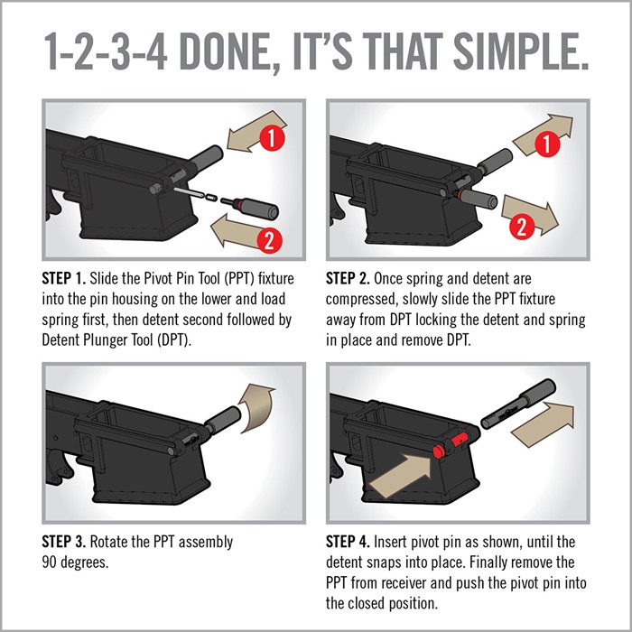 Hvordan kan en så liten oppgave forårsake så mye frustrasjon? Pivot Pin Tool for AR10 gir deg et ekstra par hender til å gjøre den klønete, pinne-kastende, smertefulle oppgaven til en rask og enkel prosess.