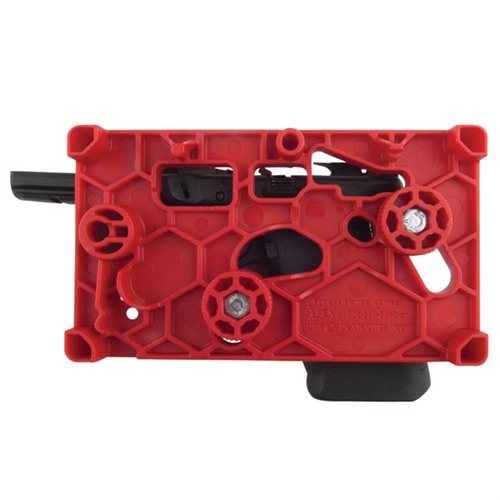 Beholdningsspor på hver side av blokken holder strikeren, noe som gjør fjerning og installasjon av striker spring til en lek. Den ene siden er for 45-strikeren og den andre er for 9/40/357-strikeren. Flyttbare bosser er lett justerbare for rask og enkel posisjonering av rammer. Hevede vegger på hver side av blokken plasserer trigger bar innenfor avtrekkeren for enkel bytte av avtrekker.