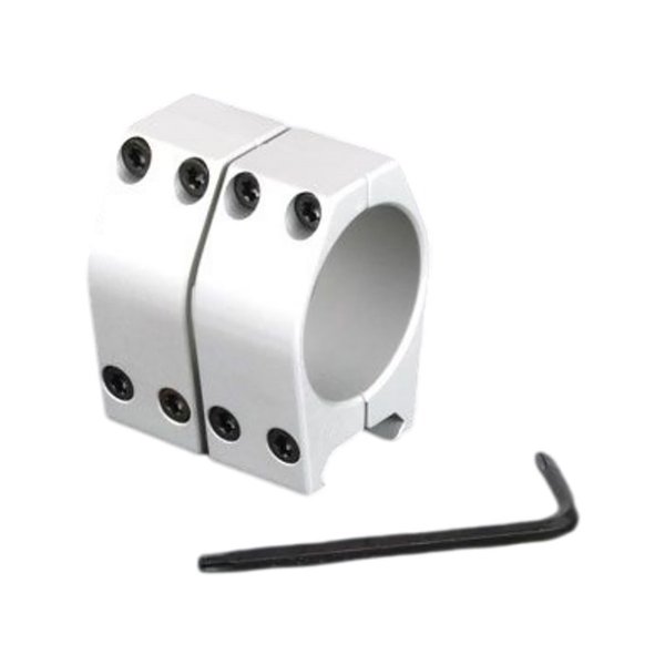 Ringhalvdelene klemmer seg sammen med fire stål Allen-hodeskruer for et stramt grep på både optikken og skinnen. Den stål kryssbarren låser seg i skinneåpningen eller basen for å forhindre glidning under rekyl.