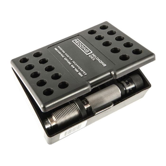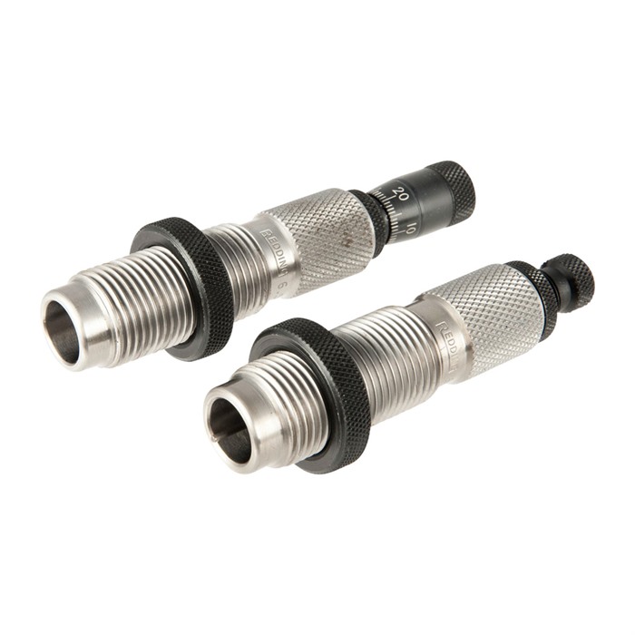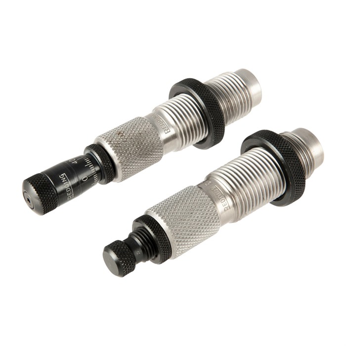 Det “Premium” Full Length, to (2) die settet inneholder en carbide Size Button i full length sizing die og Bullet Seating Micrometer på settedie.