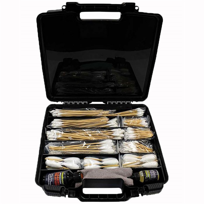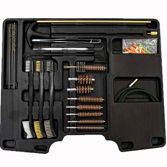 Settet inneholder børster, løsemidler, oljer, svaber og tilbehør for rengjøring av løp med diameter fra .220 til .450. I tillegg får du børster og svaber for rengjøring av større rør og løp opp til .750″/12 gauge.