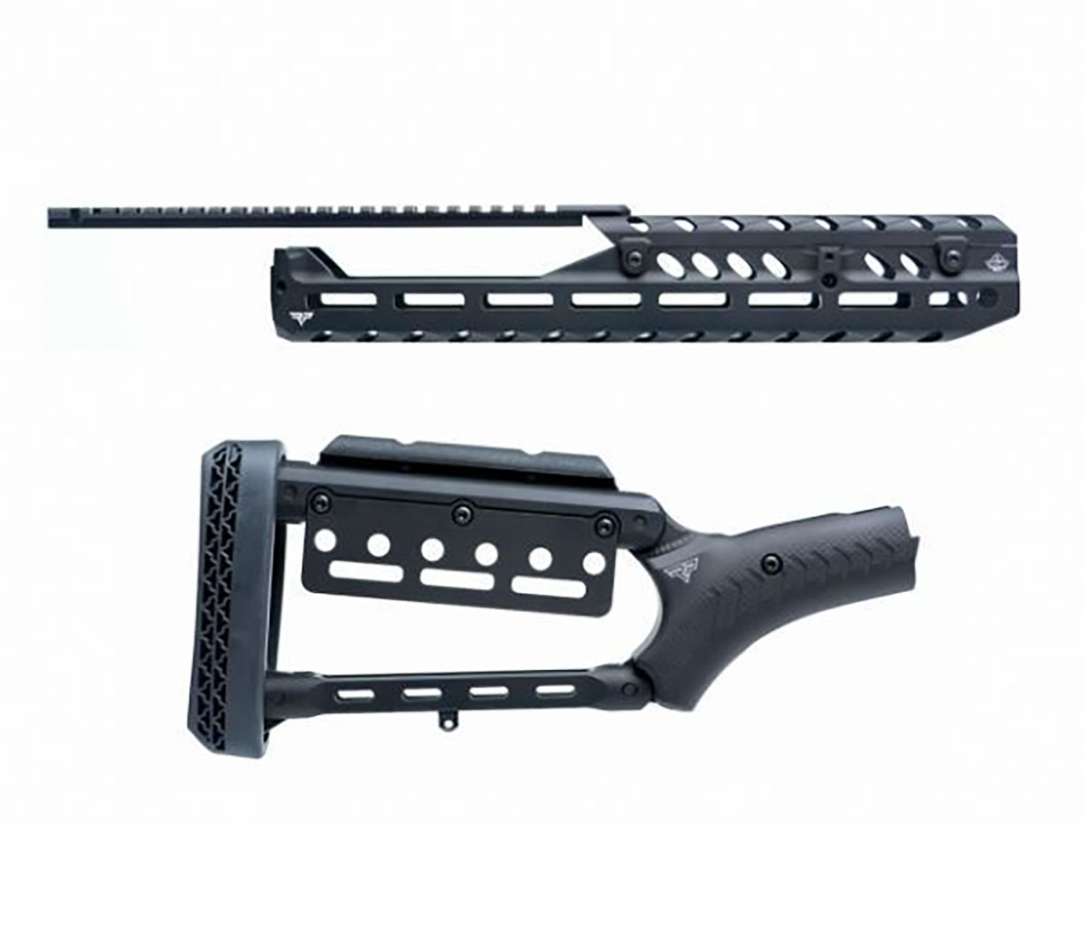 850078134370 The PewView M-LOK Rail System was developed in collaboration with renowned shooter Nick Johnson (PewView) to elevate modern shooting performance to the next level. Product Details: Material: 6061-T6 aluminum, Type III hard anodized, manufactured in Texas, USA Handguard: 13.25" (33.66 cm) with heat shield and 11" (27.94 cm) Picatinny rail featuring an integrated peep-sight cutout Stock: Adjustable stock with cheek rest and M-LOK accessory panel Overall Length: 12.5" (31.75 cm) length of pull (LOP), ¾" shorter than standard models Features: – Designed for the modern “thumb-over” shooting style – Flexible mounting options for optics and accessories – Ergonomic design for maximum comfort and precision – Durable, lightweight construction for long-lasting performance Benefits: – Sleek, distinctive design inspired by PewView – Ideal for competitive and recreational shooters – Precision craftsmanship and high-performance components