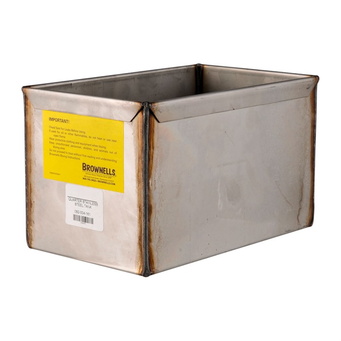 QUARTER TANK, QUARTER BLUING TANK er den ideelle løsningen for NitreBlue bluing av håndvåpenløp, rammer, sklier, sylindere og alle de små delene som følger med dem.
