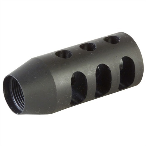 Three expansion chambers provide up to 45% measured reduction in felt recoil. Triple baffle, exhaust slots redirect noise and muzzle blast away from the shooter. Gives high volume shooters a quiet sounding brake that's easy to clean. Closed bottom keeps exiting gas from blowing up dirt and debris. Tapered shank for easier fitting to different barrel diameters. Adds 1-1/4" to barrel length. Comes with a thread protector.