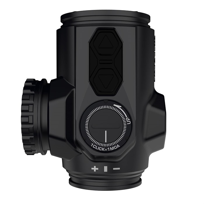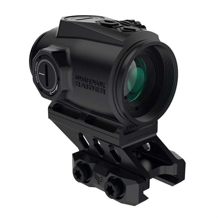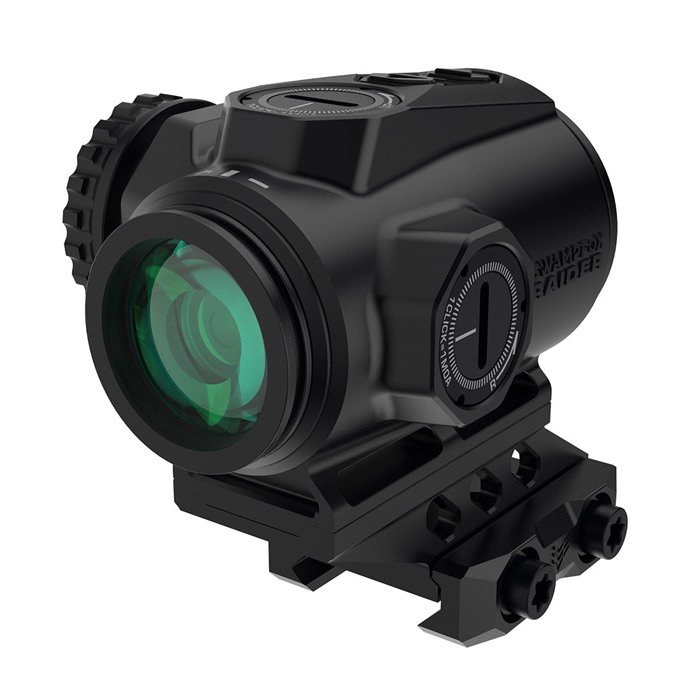 Tilgjengelig med rød og grønn belysning, fremstår Raiders etset retikkel svart når belysningen er av. Shake N’ Wake bevegelsessensoren for automatisk på/av sparer batterilevetid og er perfekt for hjemmeforsvar. Hvis du har problemer med å bruke en standard rød prikk, er Raider det rette valget for deg.