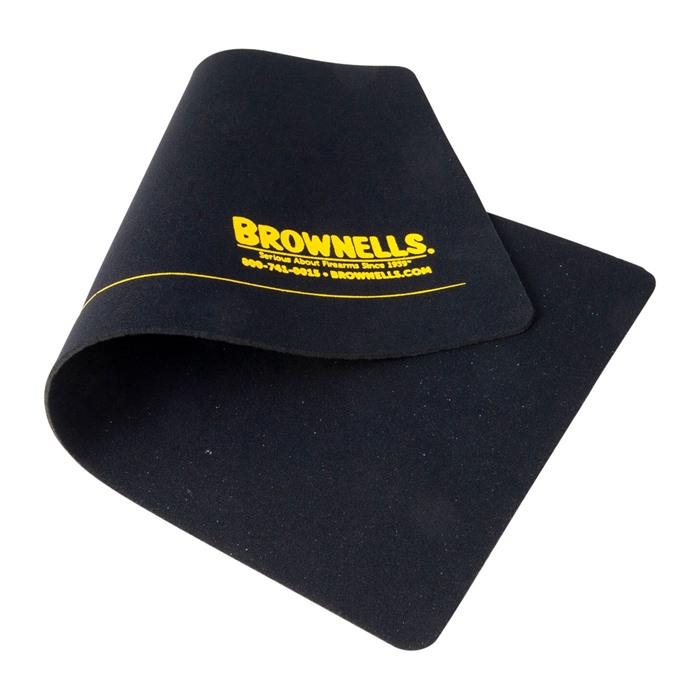 Den RANGE/BENCH GUN MAT fra BROWNELLS er en myk og fleksibel matte som beskytter finishen på våpenet ditt under rengjøring eller reparasjon. Den svampete, neoprenkjernen beskytter våpenet mot støt og riper, mens det nylon ytre laget holder bluing i perfekt stand og rengjøringsstenger fri for små partikler som kan sette seg fast og skade riflingen.
