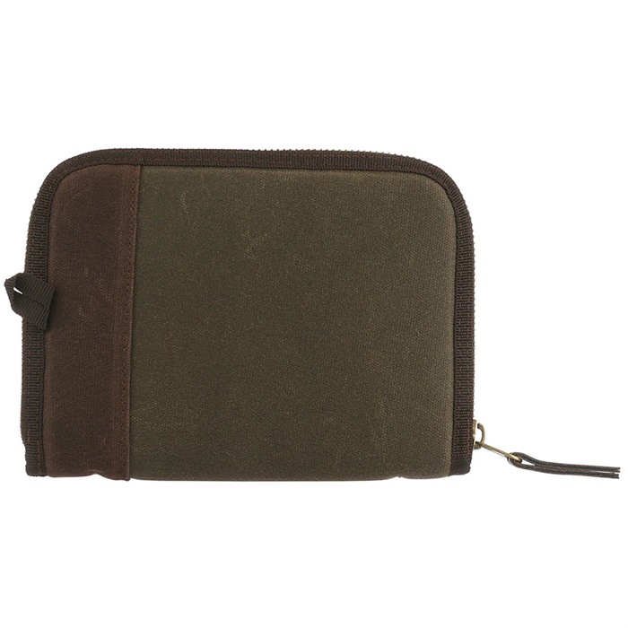RAWHIDE WAXED CANVAS PISTOL RUG Take your hunting gear to the next level with the Rawhide Waxed Canvas Pistol Case, a true reflection of top-tier quality, timeless style, and unmatched durability. Meticulously crafted from rugged 24 oz. cotton duck waxed canvas, this case combines a cool aesthetics with outstanding protection for your prized firearm. Featuring antique brass zippers and a leatherette logo patch, this case exudes a vintage charm that adds a touch of elegance to your hunting gear. On the inside, the plaid flannel lining does a fantastic job of protecting your firearm's finish, shielding it from bothersome scratches and ensuring it stays in top shape. Plus, with the heavy gauge interior foam padding, your pistol remains snug and secure, no matter how challenging the hunting trail gets. This pistol case offers ultimate convenience without sacrificing functionality. Let's not forget the waxed canvas exterior – not only does it rock a classic look, but it also boasts exceptional weather resistance, making it the ideal companion for all your hunting escapades, rain or shine. Elevate your gear with the Rawhide Waxed Canvas Pistol Case and enjoy the perfect fusion of expert craftsmanship, timeless style, and unbeatable protection. Get ready to make a statement with a gun case that pays homage to the rich heritage of hunting while keeping your firearms safe and stylish. FEATURES: Durable waxed cotton canvas construction Antique brass zippers Leatherette logo patch Plaid flannel lining to protect your firearm’s finish Heavy gauge interior foam padding for maximum impact resistance SPECIFICATIONS: Exterior Dimensions: 8"- 8.5"L X 6.45"H /12"- 12.00" L X 8.25" H 12": 11.00" Interior Storage is perfect for large frame sized pistols 8" : 7.00" Interior Storage is perfect for large frame sized pistols