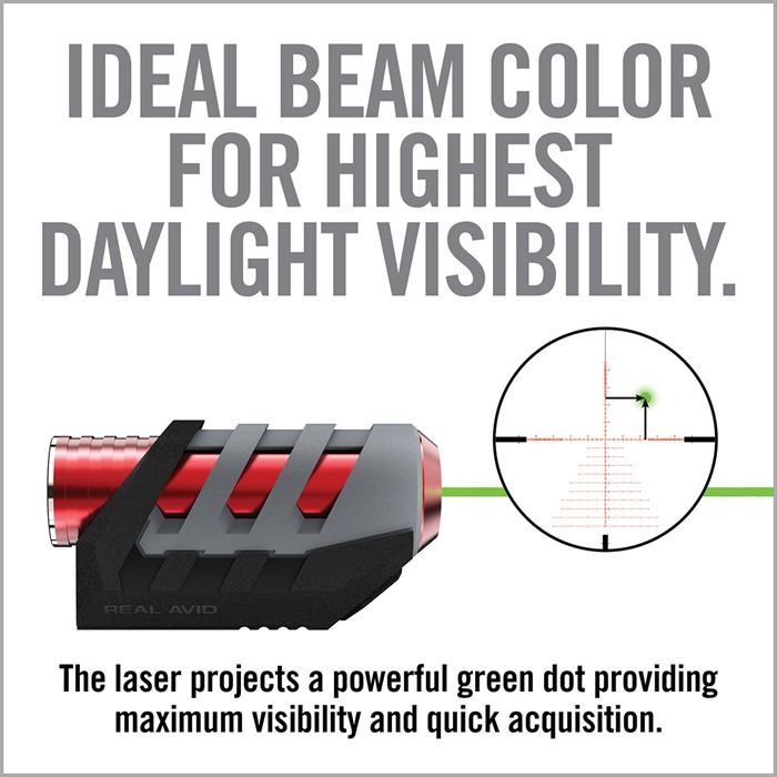 Inne i det robuste og beskyttende eksoskjelettet finner du en presisjonsmaskinert, fabrikkkalibrert grønn laser. Laseren projiserer en kraftig, perfekt sirkel ved hjelp av den lyseste dagslys-synlige fargen i spektret. Dette gir maksimal synlighet og rask oppdagelse.