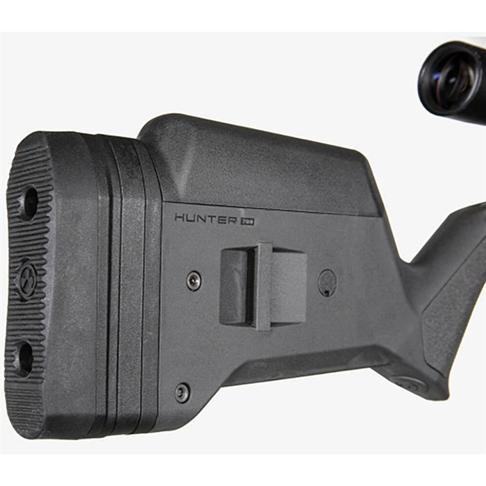 Magpul Hunter 700 LA-stokken er laget av forsterket polymer og en maskinert, anodisert A380 støpt aluminiumsbeddingblokk. Denne stokken tilbyr brukerne en fullt justerbar lengde på trekk, kombhøyde og forbedret ergonomi.