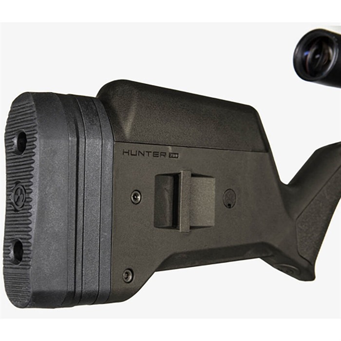 Magpul Hunter 700 LA-stokken er laget av forsterket polymer og har en maskinbearbeidet, anodisert A380 støpealuminium bedding blokk. Denne stokken tilbyr brukerne en fullt justerbar lengde på trekk og kinnhøyde, samt forbedret ergonomi.