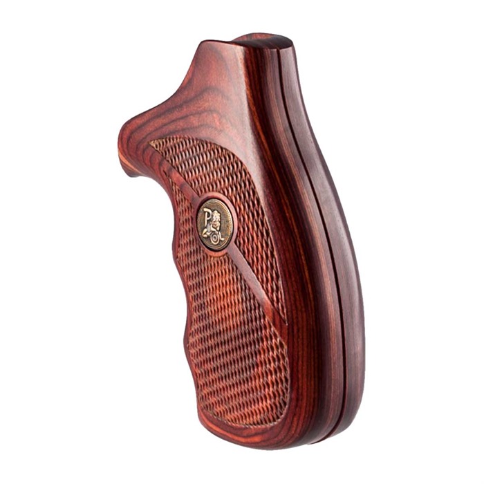 Pachmayr Renegade Wood Laminate Grips for S&W K, L ramme krever ingen tilpasning og kan umiddelbart festes til din medium-rammede revolver, noe som gir deg forbedrede funksjoner med et enkelt skruv.