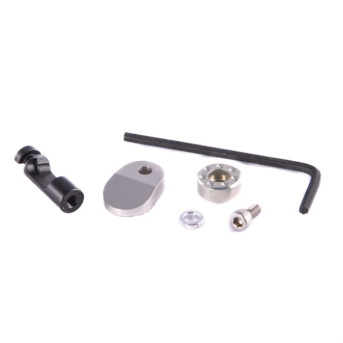 - To knapper inkludert: Den rutete, runde knappen er høyere og bredere enn den originale knappen, men fortsatt liten nok til at en skytter med større hender ikke ved et uhell aktiverer den.