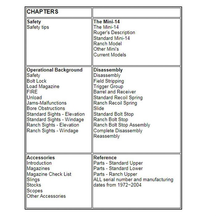 Contains information that isn't in the owners manual, but is not a comprehensive guide to all things Mini-14/30 related.