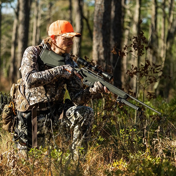 - Forbedret ergonomi: Hunter Lite Stock er kompatibel med både høyre- og venstrehåndsrifler ved enkelt å bytte ut en innsatselement på stokken.