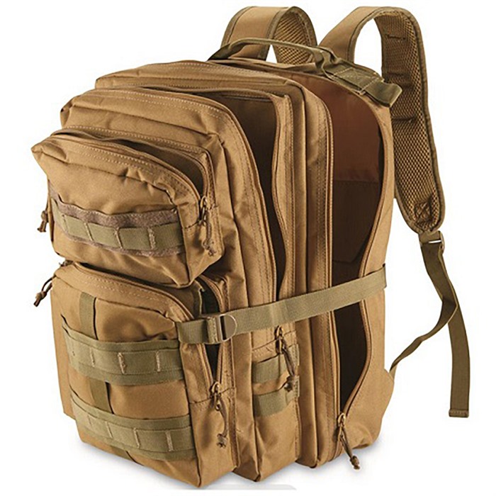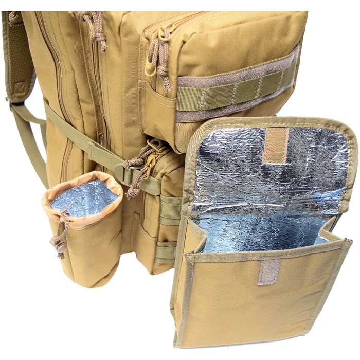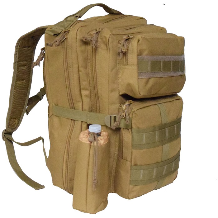 CACTUS JACK ARMORED TRANSPORT BACKPACK Customizable design backpack expands for extra storage and has MOLLE attachments on the front and sides for adding extra gear. Padded back has a zippered opening to store the included water bladder. Two zippered main compartments and two zippered smaller front compartments. These packs have a hydration blader, insulated water bottle holder and a insulated cooler. There is also a slot that accepts any 10" x 12" armor plate for ultimate protection. SPECIFICATIONS: Accepts MOLLE and ALICE components Hydration Bladder Included 17in. X 11in. X 10in. Weighs 3lbs. Heavy duty 600 denier polyester PU coated interior Zippered compartments Water repellent Wrinkle resistant Soil repellent Adjustable padded shoulder straps Heavy duty zippers Imported
