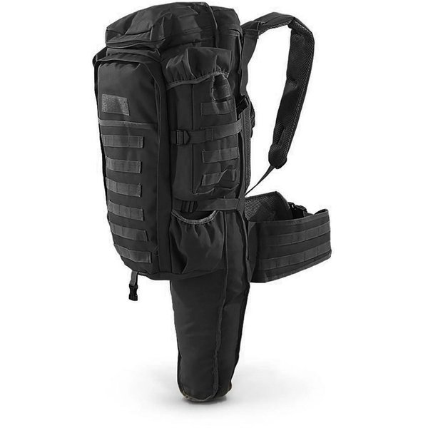 TACTICAL ASSAULT BAG WITH RIFLE HOLDER This Assault Pack provides roomy, durable transport for your supplies, clothes and equipment. Great for day trips, hunting and more. FEATURES: Padded back, shoulder straps and waist belt to carry a heavy load in comfort Fully padded compartment to carry a rifle Main compartment is 18 x 10 x 5" Rifle holder measures 42" from butt to barrel Has lid pocket and 2 side gear holders Modular straps for adding more gear Heavy-duty haul handle can be stowed inside lid 900-cu. in. capacity