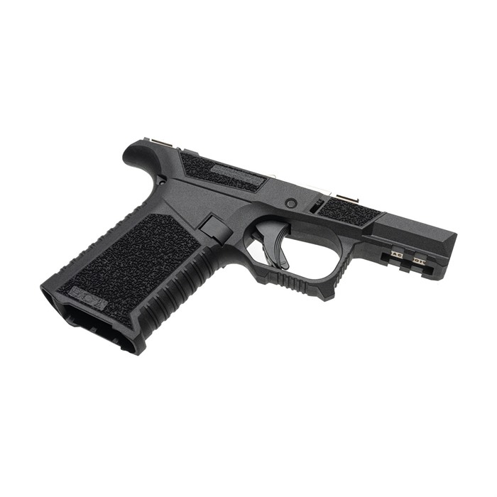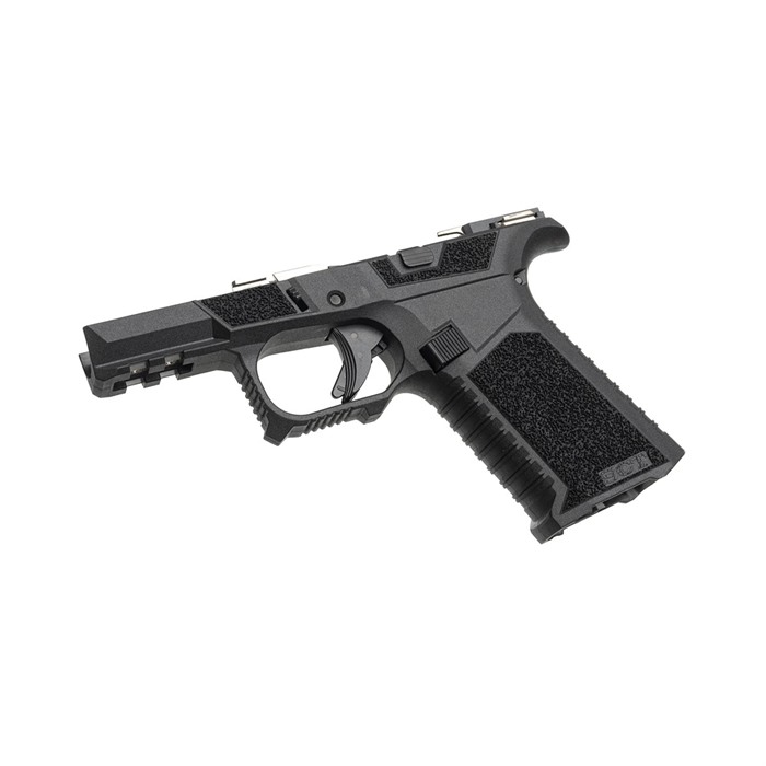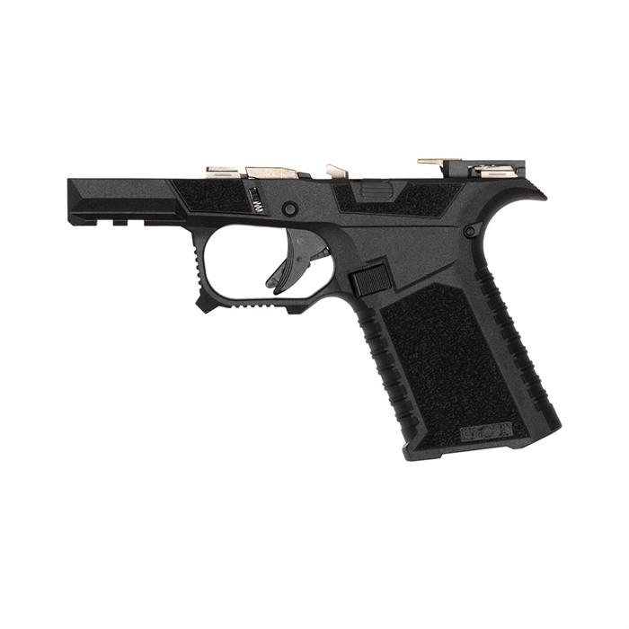 The SCT Manufacturing Glock® Compatible Sub Compact complete assembled frame is going to change the way you build pistols. It is the only frame at this price point packed with this level of features. This is a serialized frame with shooter-oriented ergonomics. Polished stainless steel over molded rails provide the optimal platform that is ready to build. They are made with an industry leading proprietary polymer blend and compatible with Glock® 43X and 48 components. Each frame is assembled using a combination of Glock® OEM and SCT manufactured parts by a certified armorer. The last step of each frame assembly is function testing utilizing a Glock® factory slide checking for safe operation, striker engagement, trigger pull, trigger reset, & magazine function ensuring the end user is left with a frame that needs nothing but a slide assembly right out of the box! FEATURES Fully assembled with SCT SC frame with Glock® OEM and SCT internals. Serrations and index point on trigger guard to help control recoil Serrations on top of beaver tail reduce glare Flared mag well Ambidextrous mag release Thumb Accelerator pad Advanced contour grip with aggressive texturing Modified Factory Picatinny with addition al mounting slot. Extended beaver tail with low profile bore axis Grip angle is the same as Glock® Slide stop guard Larger trigger guard for better access with gloves Recessed contoured mag release area for faster mag changes Multi caliber- Compatible with compact 9mm & .380 Frame assembly includes: SCT SC polymer frame, electroless nickel locking block, OEM trigger assembly, standard polymer magazine catch, magazine catch spring, steel trigger pin, steel locking block pin, standard OEM slide lock, slide lock coil spring, polymer trigger housing pin, OEM trigger housing with ejector, standard slide stop assembly & polished 4.5 lb. electroless nickel trigger connector. Disclaimer: SCT Manufacturing recommends the installation of mating components be performed by a certified gunsmith to ensure proper function and safety. Due to variations in third party parts and accessories, SCT Manufacturing will not be held liable for any damage caused to you and/or your firearm as a result of aftermarket accessory use.